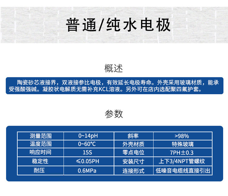 纯水PH电极工业在线PH电极探头